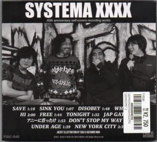 その結成40周年を記念して80年代にリリースされ現在のライヴでも演奏される確率が高く、歴年の活動を支え数十年生き残ってきた厳選された楽曲を現メンバーで再録した40周年記念作品 ”SYSTEMA XXXX” 7インチEPを限定400枚プレス(既に完売)。