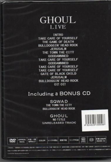 本DVDにはGHOULの未発表曲[NO TITLE],SQWAD(ex.GHOUL)の1st ソノシート[THE TOWN THE CITY c/w BULL DOGGIN' HEAD ROCK]のボーナスCD付!!